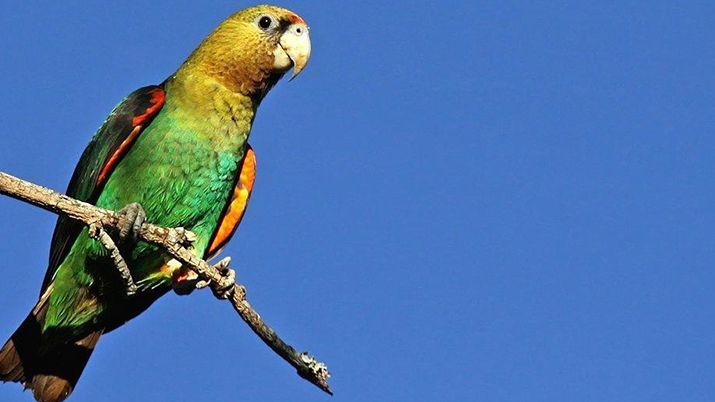 Listed as least concern by the IUCN Red List, but this considers the species as a whole, including the more northern subspecies. If the Cape parrot is accepted as a separate species, then its Red List status would be much higher, based on habitat loss and illegal collecting for the pet trade.